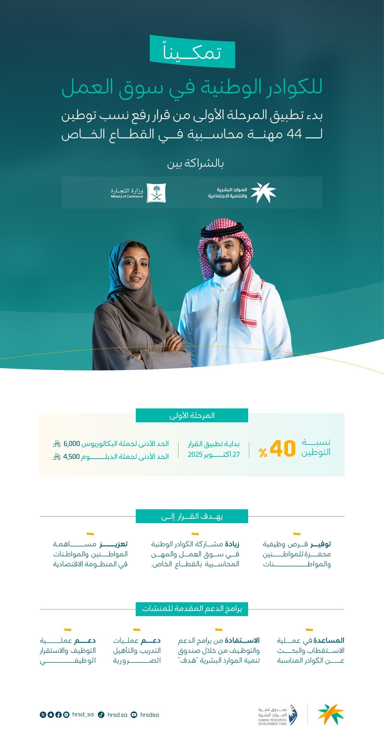 KSA HR Ministry begins 40% Saudization in 44 accounting professions