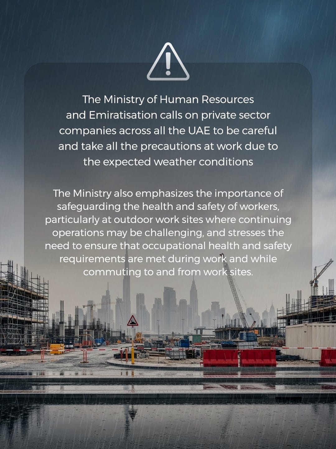 UAE urges private sector firms to strengthen worker safety measures amid expected adverse weather