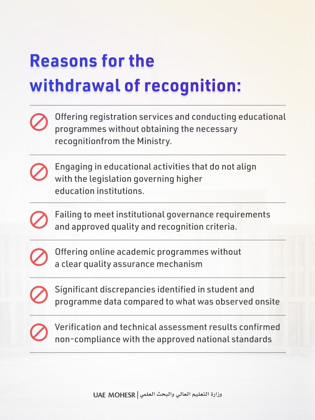 The decision aligns with ongoing nationwide efforts to ensure the integrity of higher education in the UAE.