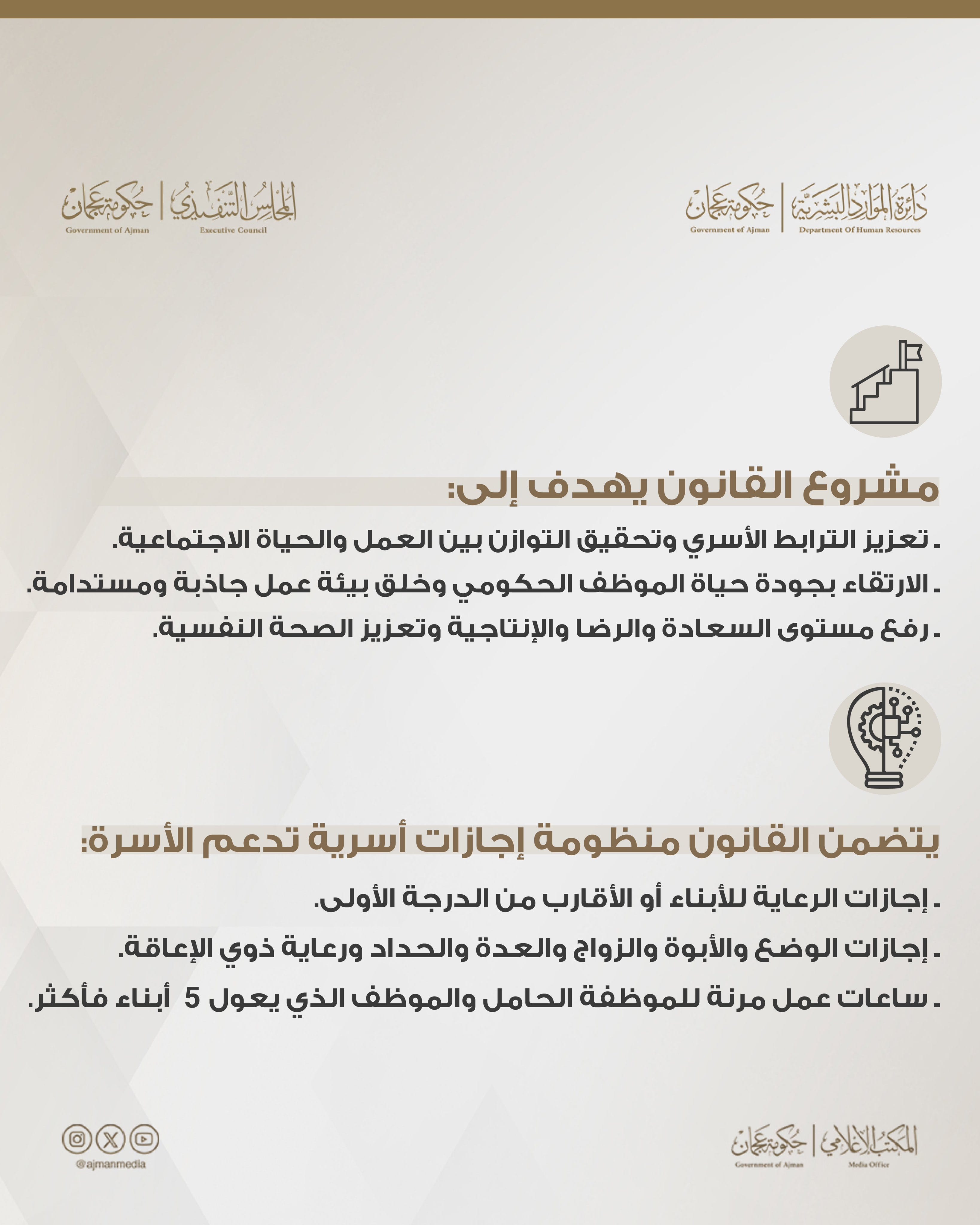 Overall, the new HR law underscores the Emirate’s commitment to institutional wellbeing, employee happiness, and sustainable work culture, supporting a modern, people-centric public sector aligned with Ajman’s long-term vision.
