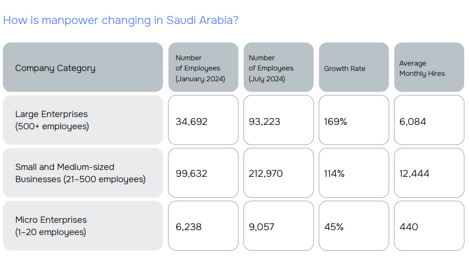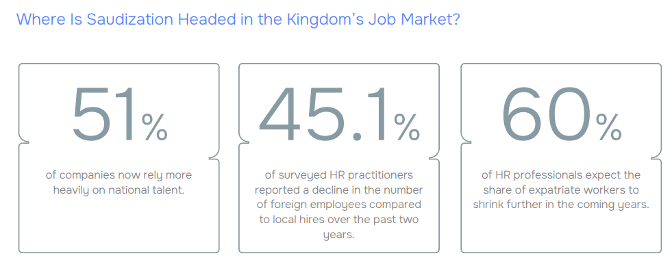 The report also highlights a structural shift toward local talent. Saudi nationals accounted for 41% of all new hires during the study period, and more than half of surveyed companies reported increasing their reliance on domestic talent.